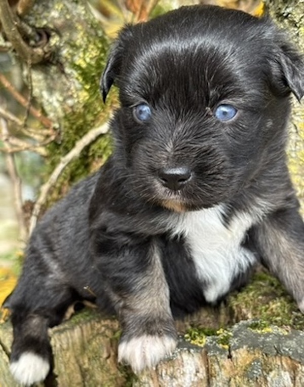 Hündin black tri mit blauen Augen - kleine Mini Aussie Hündin